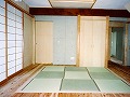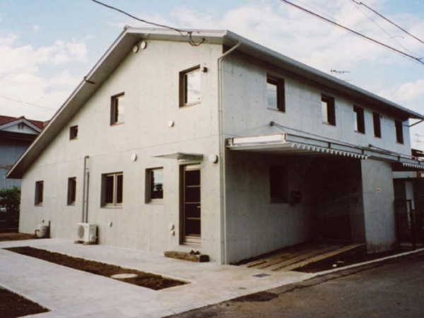 RC造の2世帯住宅。1階中央部の居間は吹き抜けになっている。冬期は横スライドの障子にて寒さをふさぐ。屋根には5kwのソーラーパネル、エコ給湯、IHヒーターのオール電化住宅。