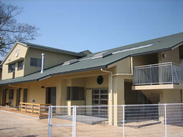 定員90名の保育園。2階の静かな所に0・1才児用の部屋をつくり、活動的な子供たちの部屋を1階に設置。床はヒノキ材、壁は漆喰、天井は紙を原料としたクロスと徹底的に自然素材にこだわった。