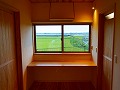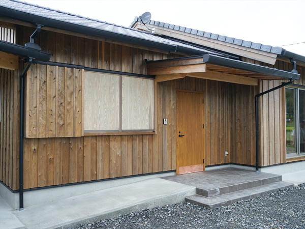 田園の中の広い敷地に建つ平屋の家。 三方に見える、飯田山、船野山、金峰山の景色が 生活する中で楽しめるように窓を配置した。 屋根付駐車場から雨に濡れることなくアプローチできる。