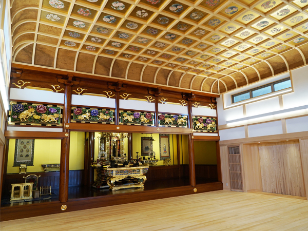 熊本地震で倒壊した木造のお寺をRC造で再建した。 内部は木造の造作で以前からあった欄間を転用した。 床は床暖房を導入し居住性をよくした。 外部の意匠には荘厳性を具現化するのに苦心した。