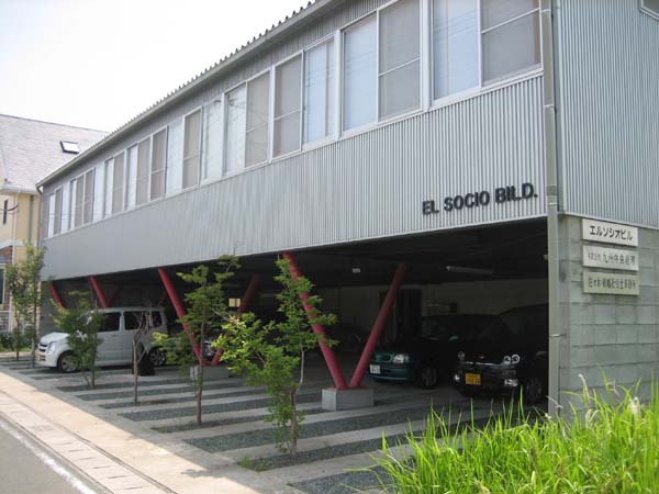 このビルは税理士事務所・司法書士事務所・社労士事務所・建築士事務所が合同で建設した事務所ビル。中央部はラーメン構造(見かけは壁式構造)で両端に鉄骨造で1階は駐車場、2階は事務所をつくる。2階と3階の鉄骨梁は中央のRC部分を貫通している。